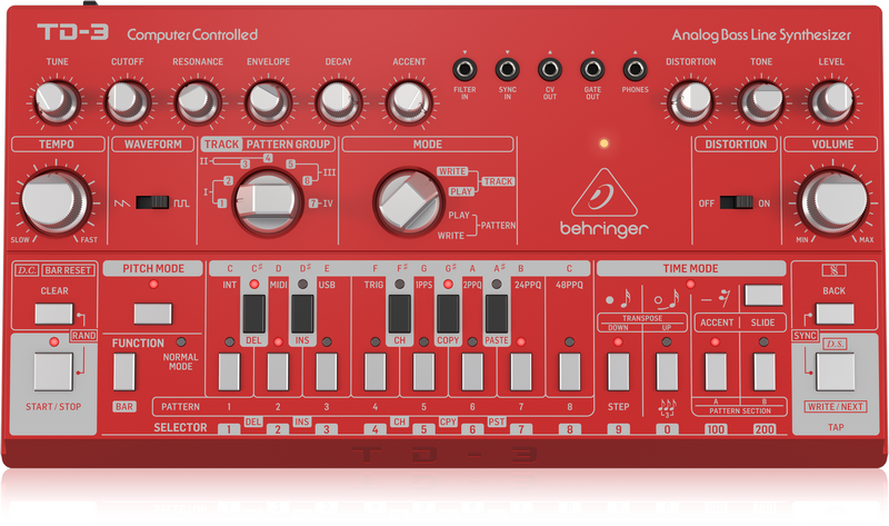 コイツの発売を心待ちにしている方も多いのでは無いでしょうか?「シカゴハウス」や「アシッドテクノ」といったジャンルを生み出したと言える伝説的名機「Roland TB-303」。中古市場でも非常に人気が高く、常にプレミア価格で取引されているこの名機を再現したのがこの「TD-3」です。